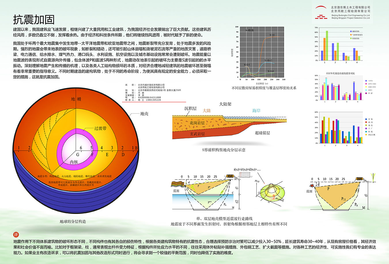 我国处于环两个最大地震集中发生地带——太平洋地震带和欧亚地震带充分发育,处于地震多发的风险期,强烈的地震会带来地表的破坏现象,如断裂和措动,还可能引起山体崩塌和滑坡泥石流等严重的地质灾害,道路桥梁,电力通信,给水排水,煤气热力,港口码头,水利设施,航空设施以及城市基础设施常常会遭到破坏。地震能量以地震波的表现形式自震源向外传播,包含体波P和面波S两种形式,地震动在地表引起的破坏力主要是S波引起的水平振动。深刻理解地震产生和传播的机理,以及各类人工结构物损坏的本质,对经济合理地减轻建筑的地震破坏甚至倒塌有着非常重要的指导意义,不同时期建造的建构筑物,处于不同的寿命阶段,为使其具有规定的安全能力,必须采取一定的措施,这就是抗震加固。